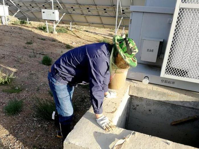 德令哈光伏電站周圍,還有一種讓所有人聞風喪膽的動物——蚊子?!暗铝罟奈米犹膳铝耍瑥?月份開始,蚊子就出來了。每年夏天,德令哈市里都會噴灑滅蚊藥物,但是項目場站遠離市區,無法覆蓋?!表椖烤C合部經理李逸山說。