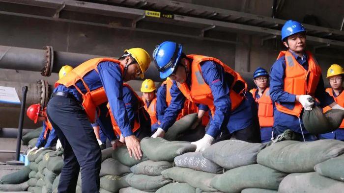 ▲ 長(zhǎng)江電力溪洛渡電廠青年突擊隊(duì)員緊張有序地開展防汛演練