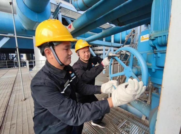 ▲ 鄂州發(fā)電公司青年先鋒工作團(tuán)隊(duì)隊(duì)員現(xiàn)場(chǎng)調(diào)試閥門