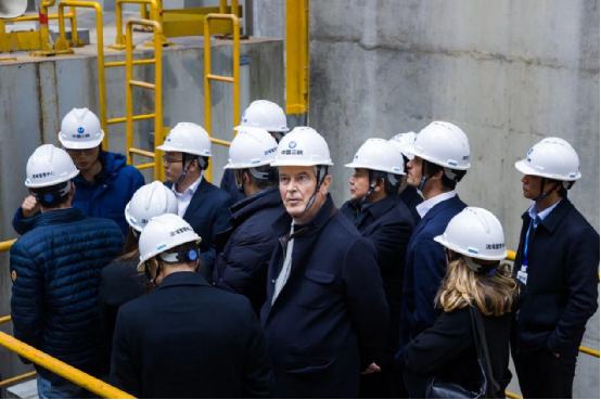 三峽青年志愿者向葡萄牙電力公司來訪成員講解三峽升船機(jī)