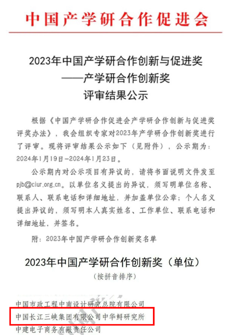 本網(wǎng)訊(胡雪辰 葉孜)近日,中國(guó)產(chǎn)學(xué)研合作促進(jìn)會(huì)公示2023年中國(guó)產(chǎn)學(xué)研合作創(chuàng)新與促進(jìn)獎(jiǎng)評(píng)審結(jié)果,其中三峽集團(tuán)生態(tài)工程中心長(zhǎng)江生物多樣性研究中心中華鱘研究所(以下簡(jiǎn)稱(chēng)中華鱘研究所)榮獲“產(chǎn)學(xué)研合作創(chuàng)新獎(jiǎng)”,長(zhǎng)江生物多樣性研究中心主任專(zhuān)業(yè)師黃桂云榮獲“產(chǎn)學(xué)研工匠精神獎(jiǎng)”。