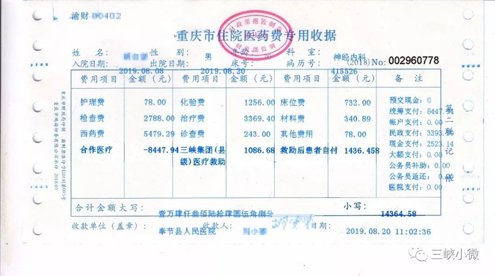 原來,在巫山、奉節(jié),貧困患者完成“一站式”結算時,會在“扶貧醫(yī)療救助明白卡”或者收據單據上發(fā)現一欄“三峽集團健康扶貧醫(yī)療基金”/“三峽集團(縣級)醫(yī)療救助”。這是三峽集團為建檔立卡貧困人口提供的“兜底”保障。建檔立卡貧困人口到縣內定點醫(yī)療機構住院就醫(yī)產生的醫(yī)療費用,通過‘五重保障’減免報銷后,如果還有超過總費用10%的錢需要繳納,超出的部分就由三峽集團提供的基金金兜底救助,確保患者自付比例控制在總費用的10%以內,大大減輕了貧困患者的經濟負擔。