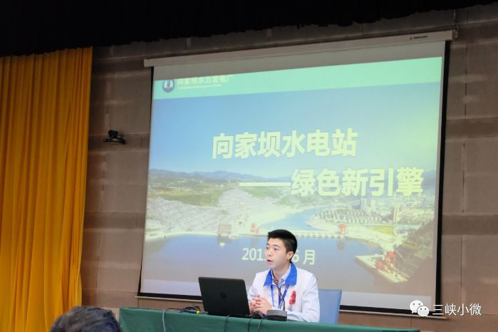 為讓同學(xué)們對(duì)向家壩工程和水電工程有一個(gè)直觀了解,三峽青年志愿者們首先帶領(lǐng)同學(xué)們參觀了工程建設(shè)展覽館,向家壩與溪洛渡工程建設(shè)部王毅華主任在這里為本次活動(dòng)致辭。兩名來(lái)自長(zhǎng)江電力向家壩電廠的青年志愿者還以“向家壩電站——綠色新引擎”和“向家壩升船機(jī)簡(jiǎn)介”為主題,為孩子們帶來(lái)水電科普講座。
