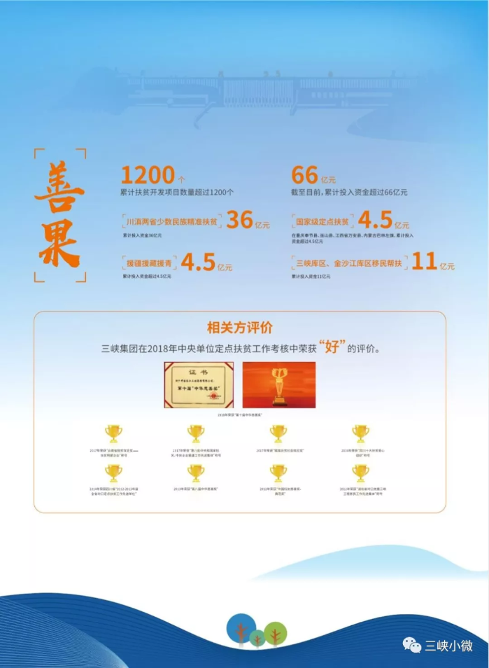 多年來,三峽集團在做強做優(yōu)做大的同時,積極開展定點扶貧、對口支援、援疆援藏援青、川滇少數(shù)民族幫扶、庫區(qū)移民幫扶等工作,努力讓改革發(fā)展成果惠及廣大人民群眾。截至目前,三峽集團累計投入扶貧和幫扶資金超過66億元,惠及全國31個省市、84個縣區(qū)旗、12個少數(shù)民族。其中,長期定點幫扶的巫山縣、奉節(jié)縣、萬安縣均已脫貧出列,巴林左旗有望今年實現(xiàn)“摘帽”;投入36億元支持云南省怒族、普米族、景頗族3個人口較少民族和四川省涼山彝區(qū)脫貧攻堅,已幫助15萬多貧困群眾實現(xiàn)脫貧。