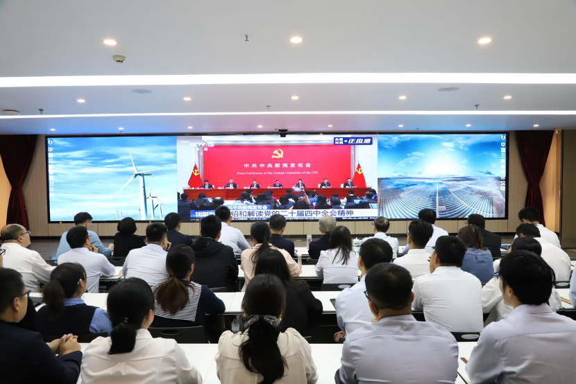 10月24日上午,三峽投資公司黨委組織集中收看中共中央新聞發布會,學習黨的二十屆四中全會精神。
