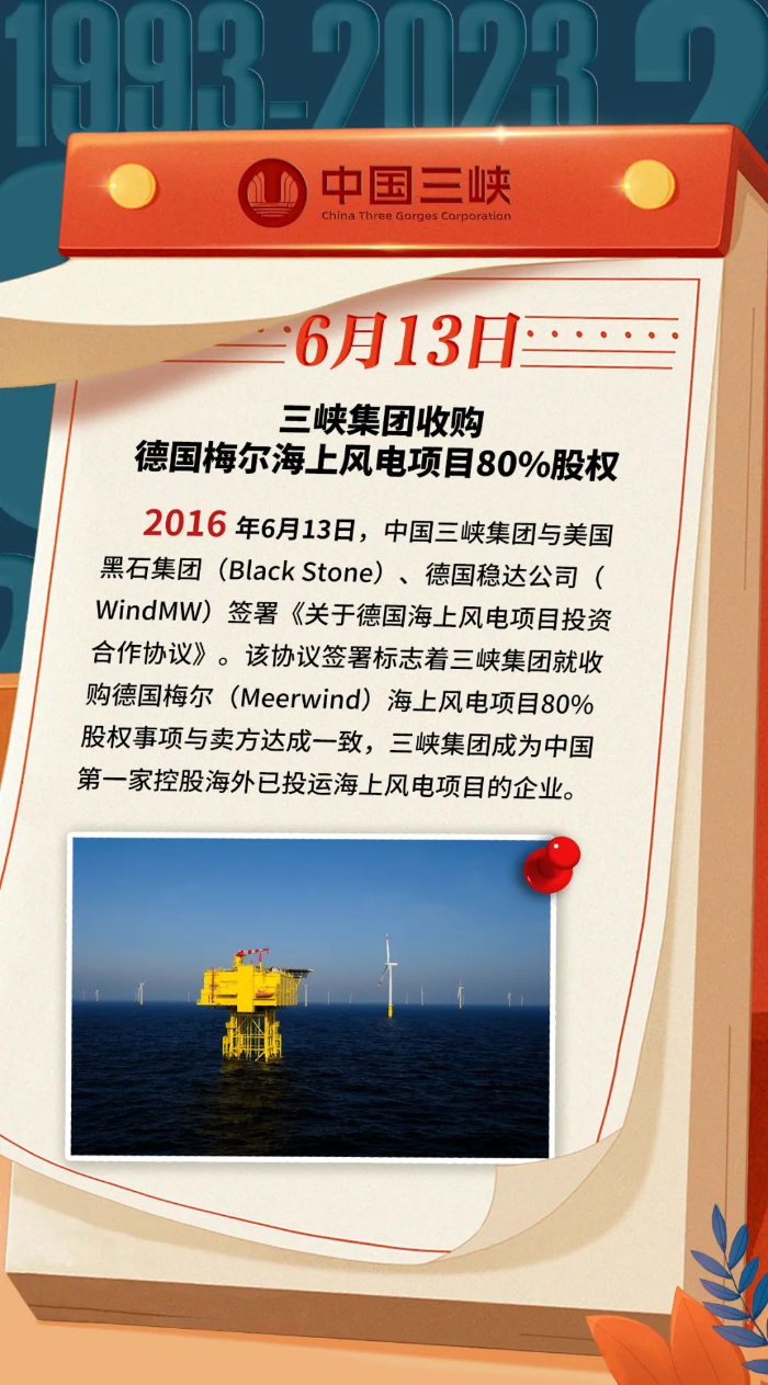 三峽·歷史上的今天丨三峽集團收購德國梅爾海上風電項目80%股權(6月12日-6月18日)