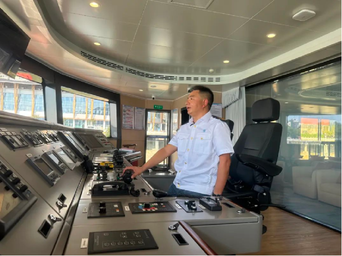▲?曾擔(dān)任過總船長(zhǎng)的湖北三峽旅游集團(tuán)葉勇在船舶駕駛室。攝影:黃欣