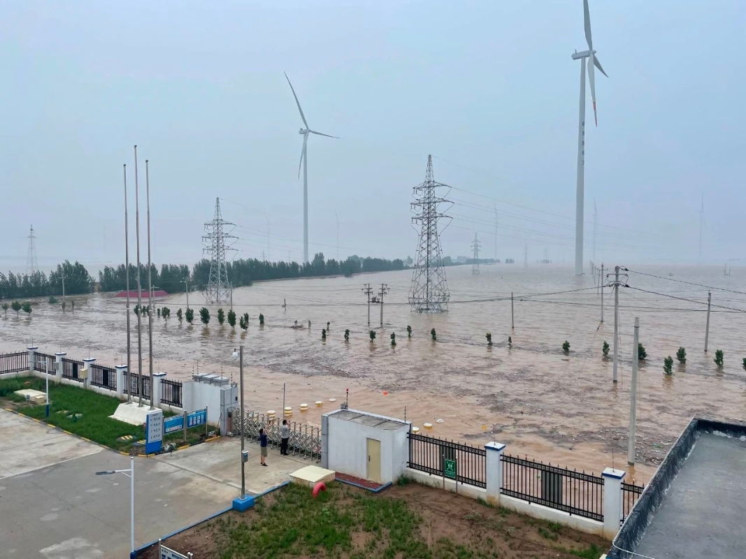 ▲ 2021年7月22日,鵬越風電場升壓站被洪水圍困